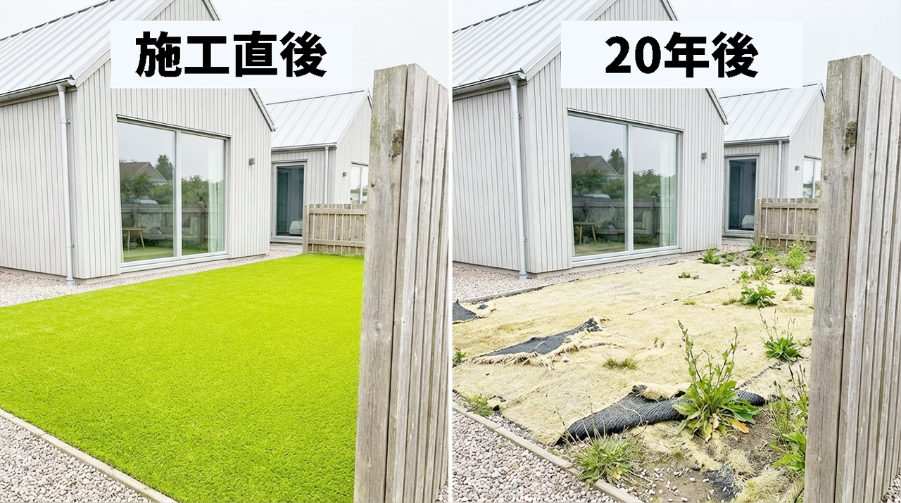 人工芝の耐用年数は20年?20年後の写真・長持ちする方法